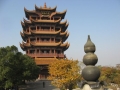 黄鹤楼几经兴废,阅尽人世沧桑。现在的黄鹤楼于1985年建成开放,巍峨壮丽,共有五层,高51.4米,黄瓦红柱,层层飞檐,四望如一。60个翘角层层凌空,72根大柱拔地而起。历代文人至此,多有题咏,尤以崔颢、李白所题之诗,千年流传,最擅胜名。