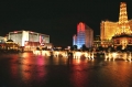 当车了进入拉城的主要街道后,半个小时前的荒凉和郁闷荡然无存,在这里你再也没法象在其他城市一样可以看到低矮的房子和一些古旧的建筑物,这里大都是超豪华酒店,其豪华的外饰,广告灯箱和霓虹把整座城市装点得美伦美焕,展示了现代化城市无以伦比的魅力。拉斯维加斯的酒店大多是吃住玩一条龙。去过拉斯维加斯的朋友大多都诉说着同一个故事----在酒赌场内走一圈后再也找不到自己住的那间房间。你真别不信,笔者就有同样经历,尽管我没法说出酒店有多大,反正我知道它的首层可通小火车,至少也得用电瓶车作运载工具。